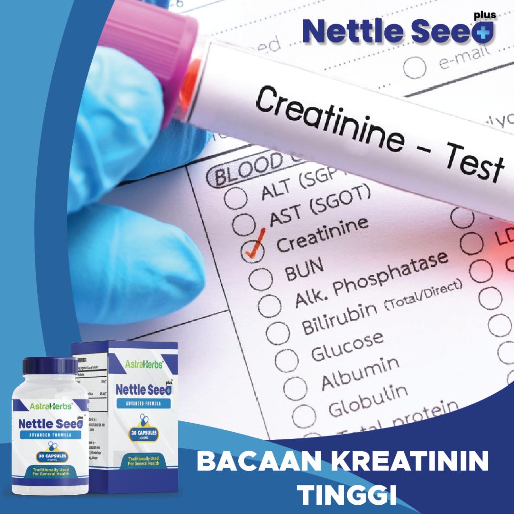 Buah pinggang rosak perlu disokong dengan Nettle Seed Plus kerana ia mampu untuk membuang sisa dan lebihan air dalam badan. Juga mengurangkan bacaan kreatinin dalam badan.