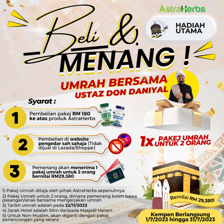 BELI 3 BOTOL KE ATAS BAGI MANA-MANA PRODUK ASTRAHERBS DAN BERPELUANG MENANGI PAKEJ UMRAH BERSAMA USTAZ DON DANIYAL