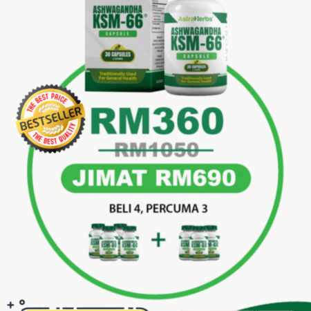 Ashwagandha KSM-66 Set 4 Botol (Percuma 3 Botol)